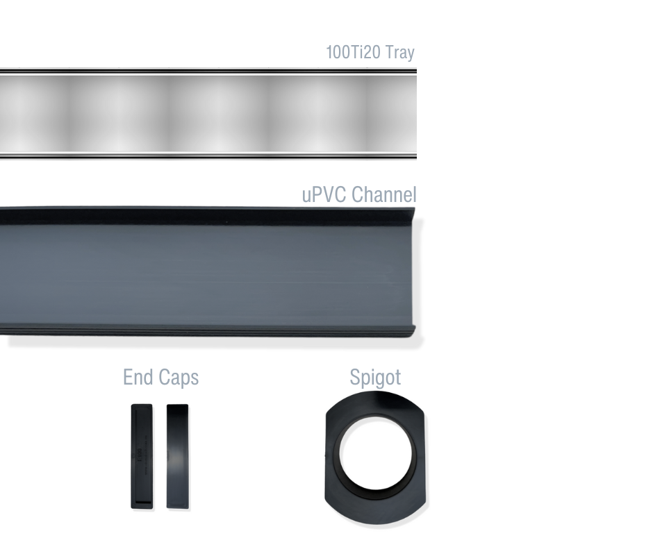The 100TiG20 incorporates a Tile Insert Tray, encased in a uPVC channel base.